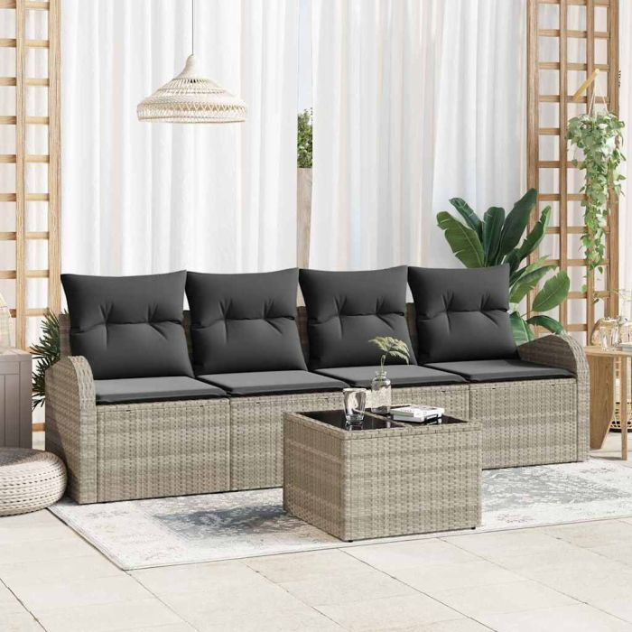 Aprašymas / vidaXL Sodo Sofų Rinkinys Šviesiai pilka 55 x 55 x 37 cm poliratanas