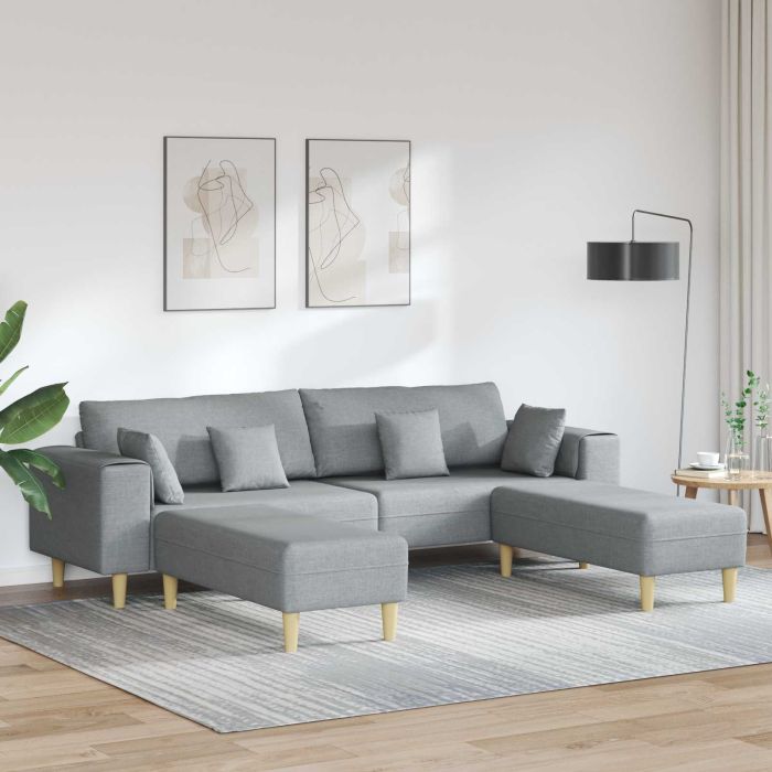Aprašymas / vidaXL Sofa su pagalve 3 pcs Šviesiai pilka audinys