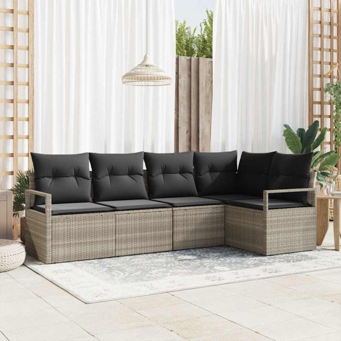 Aprašymas / vidaXL Sofos komplektas su pagalve 5 pcs Šviesiai pilka poliratanas