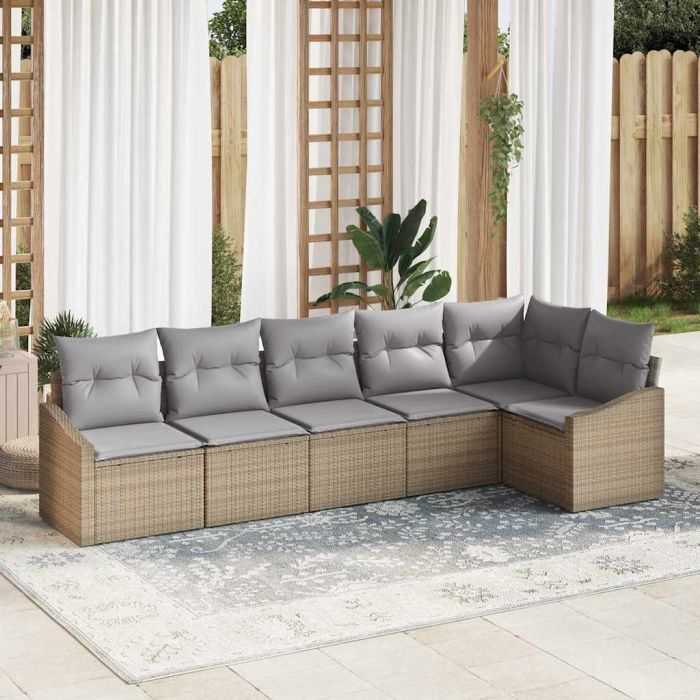 Aprašymas / vidaXL Sofos komplektas su pagalve 6 pcs Smėlio poliratanas